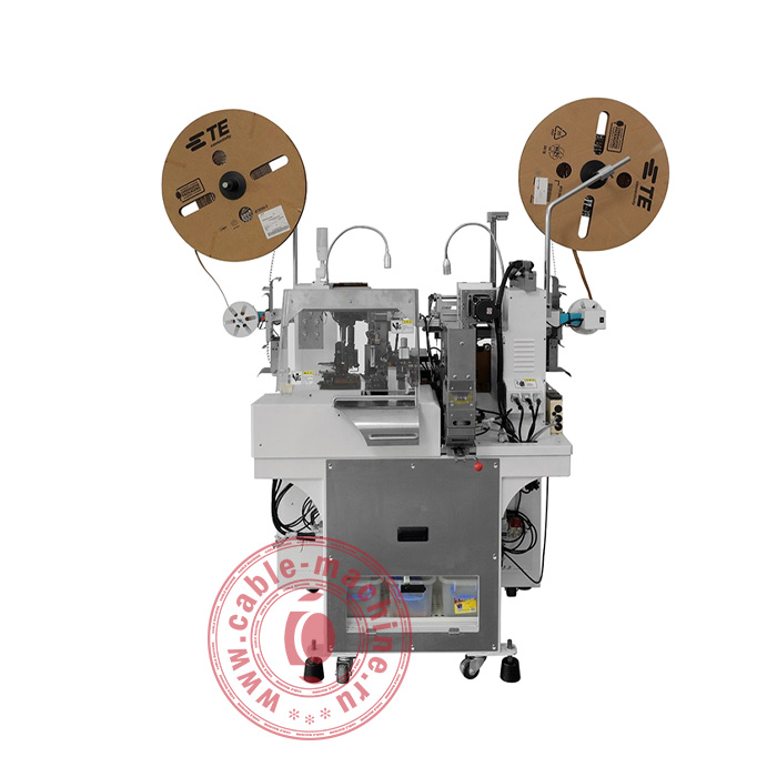Автоматическая машина для зачистки и опрессовки наконечников KS-H2R5 – это сервоприводной станок, предназначенный для полностью автоматической двухсторонней зачистки проводника от изоляции и последующего крепления клемм с водонепроницаемыми заглушками. Изделие оснащается конвейерной лентой, длина которой может оговорена при закупке. Придаваемая машина для автоматической подачи провода может быть настроена в соответствии с размером катушки и диаметром провода.