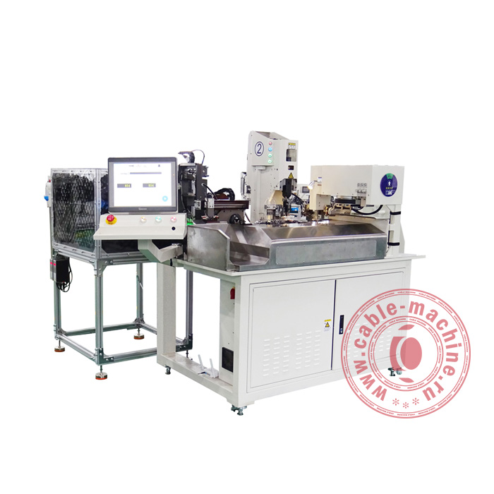 Автоматический станок для мерной резки, зачистки и опрессовки наконечников на провода BZW-3.0+GF+N – это мини линия по производству фотоэлектрических соединителей и проводов, и в основном она предназначена для обработки жгутов. Помимо пресса для обжима клемм, данная модель оснащена рабочими станциями для вставки разъемов и затяжки гаек. Изделие может вставлять фотоэлектрический соединитель и затягивать гайки соединительной коробки за один раз после процесса обжима, что многократно повышает степень автоматизации производства фотоэлектрических соединительных коробок для солнечных панелей, в частности.