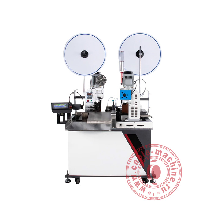 Автоматический станок для обжима наконечников проводов EW-22B – это экономичный и компактный полностью автоматический пресс для снятия изоляции и обжима проводника с двух сторон. Электронное управление через цветной сенсорный экран и различные возможности конфигурации (несложная замена аппликаторов) позволяют задействовать его для множества задач для проводников стандарта AWG 18 – AWG 30. Система датчиков слежения отвечает за позиционирование, подсчет и безопасность. Так, работа будет приостановлена при низком давлении воздуха в пневматической системе, прекращении подачи провода или клемм, прерывании провода. Дополнительно изделие может комплектоваться датчиком усилия обжатия и автоматическим приводным податчиком проволоки.