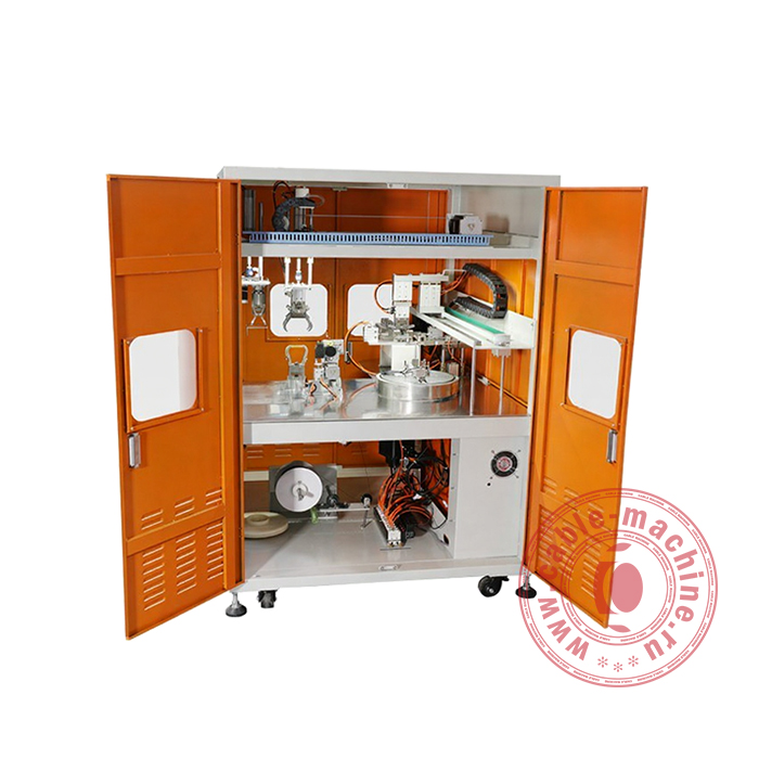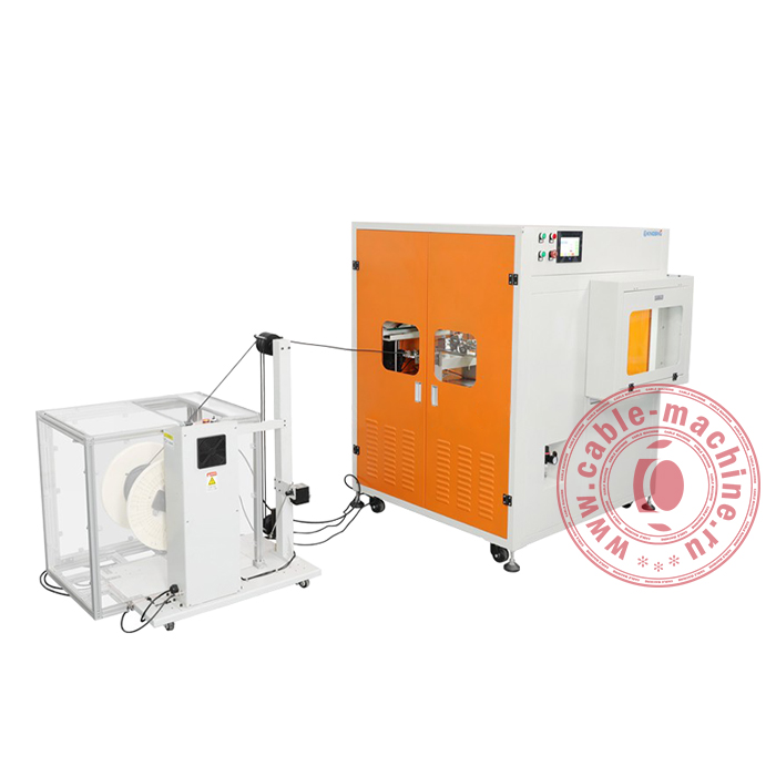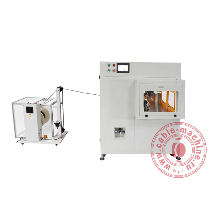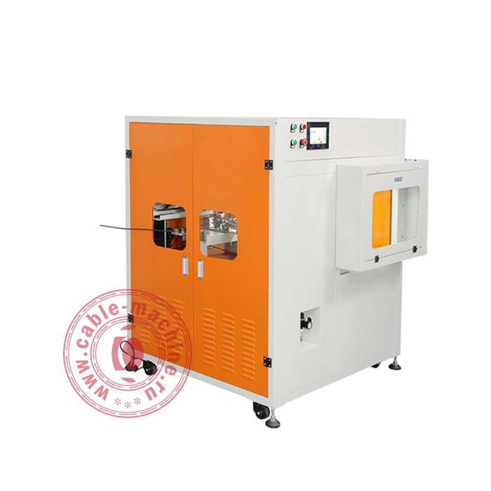 Станок для намотки кабеля KS-C12 конструктивно выполнен в виде шкафа, внутри которого смонтированы исполнительные органы, то есть операционная зона полностью закрыта. Эти инструменты последовательно и полностью в автоматическом режиме выполняют втягивание провода, его выравнивание, отрезание, скручивание в моток, связывание/фиксацию фрагментом проволоки мотка и выброску наружу. Всё это делается под полным контролем автоматики. Машина имеет цифровой операционный экран с широким функционалом и удобным интерфейсом «человек-машина». Выключить работу немедленно можно аварийной кнопкой.