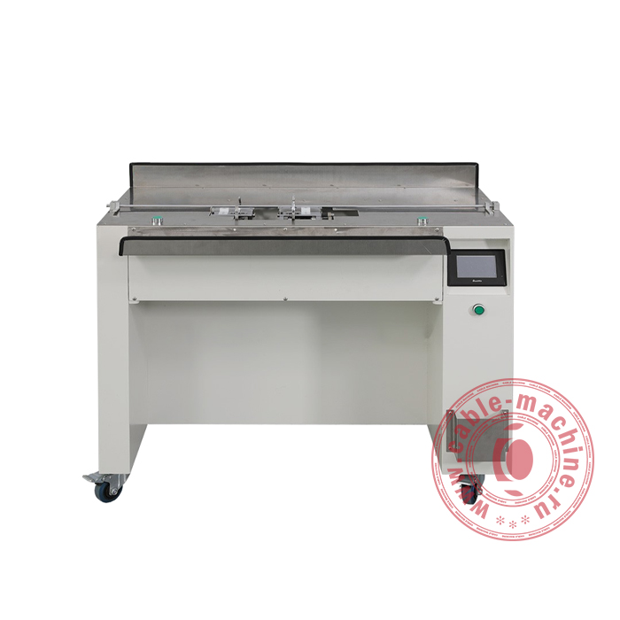 Станок для стяжки провода KS-K30 – это специализированный стол с двумя электромеханическими устройствами для обвязки проводников нейлоновыми стяжками, которые в эти механизмы работник перед каждой операцией вставляет вручную. Каждое устройство – это фиксатор и направляющие приводные рычажки, после действия которых плоский конец стяжки до упора вставляется в кольцо на другой стороне (зубчатая сторона стяжки не дает петле ослабиться). Пуск операции выполняется одновременно двумя кнопками по бокам стола.