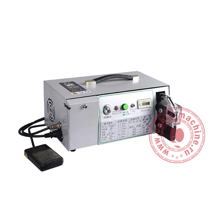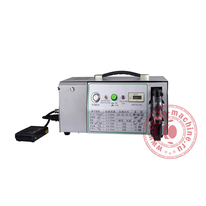 Электрический полуавтомат для обжима клемм KS-99C – это настольный обжимной инструмент со сменными матрицами, который подходит для проводов малых диаметров. Он выполнен в виде короба с удобной резиновой ручкой для ношения. Машина имеет четыре передачи и настроена на работу на первой передаче. После 400000-500000 раз обжима может наблюдаться понижение давления, поэтому оператор может настроить изделие на работу на второй или третьей передаче в зависимости от требуемого эффекта обжима. Набор матриц для конкретных задач – опция.