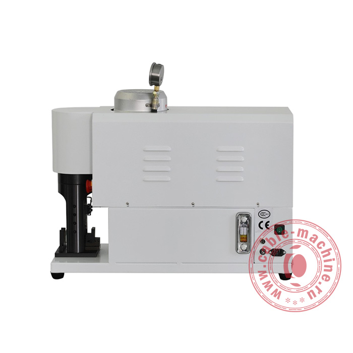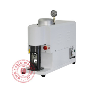 Станок для опрессовки клемм на кабель KS-30T – это настольный электрогидравлический обжимной пресс вертикального типа, который работает с проводниками большого сечения до 250 мм². Гидравлика уже интегрирована в состав частей пресса, и внешняя станция не требуется. Матрицы для обжима могут быть легко переустановлены в фиксаторах наковальни. Предусмотрена кнопка аварийного выключения питания. Действия оператора очень простые: надеть вручную клемму на кабель и подать его точно в матрицу, после чего нажать ножную педаль замыкания контактов и удерживать кабель до момента подъема поршня вверх.
