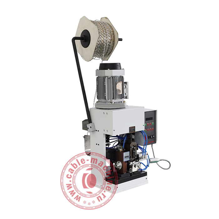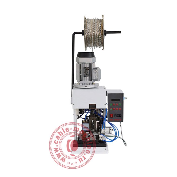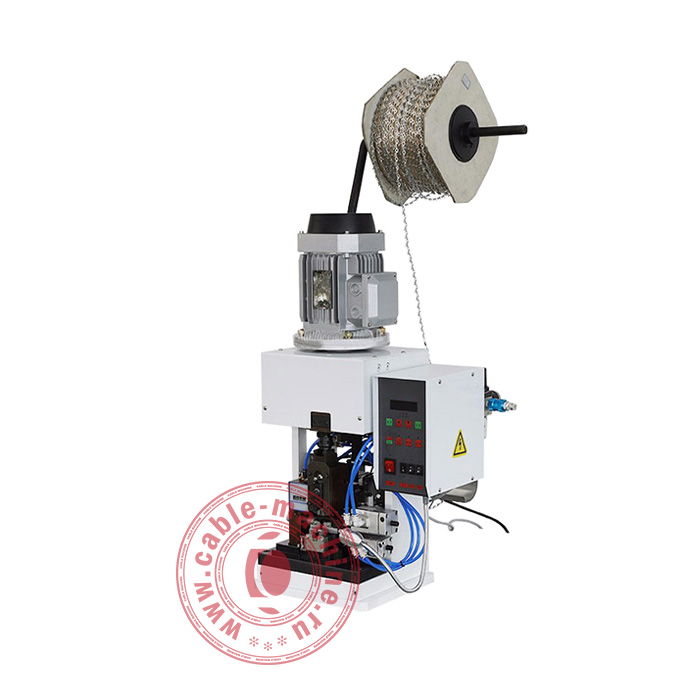 Станок для опрессовки наконечников на провода KS-3030S является настольным полуавтоматическим прессом вертикального типа, который разработан для зачистки и обжима проводов клеммами, которые подаются в операционную зону из катушки по методу прямой подачи. В основном, изделие задействуют для обработки многожильных проводников, которые должны быть первоначально избавлены на ином оборудовании от общего/верхнего слоя изоляции. Исполнительные инструменты усилены пневматическими приводами (требуется внешний источник воздушного давления).