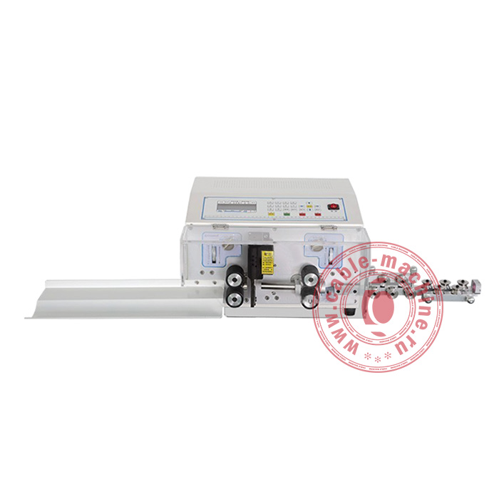 Автоматический станок для резки проводов KS-W612 – это программируемая машина, которая оснащается шестью шаговыми двигателями, при этом каждый из четырех втягивающих валков с резиновым покрытием оснащается собственным двигателем. Изделие ориентировано на очистку кабеля BVR сечением до 12 мм2, но может успешно работать и с другими проводниками, у которых надо удалить внешнюю оболочку изоляции. Чтобы не вводить каждый раз заново все исходные параметры в программу, память бортового компьютера способна вместить до 99 конкретных алгоритмов.