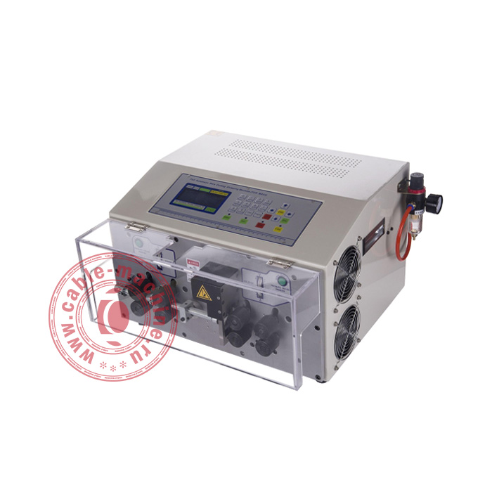 Автоматический станок резки и зачистки провода EW-07A – это программируемый электропневматический (требуется внешний источник воздушного давления) аппарат размером 390х350х255 мм, спроектированный для эффективной работы с образцами 0,3…25 мм² в изоляционной оплетке из ПВХ, тефлона, плетеной ткани или стекловолокна. Ввод данных цикла выполняется оператором через ЖК-панель с сенсорными кнопками и двуязычным интерфейсом. Уделено внимание безопасности – операционная зона закрыта защитным коробом из прочного оргстекла. Работа комфортная, так как уровень шума – до 70 дБА.