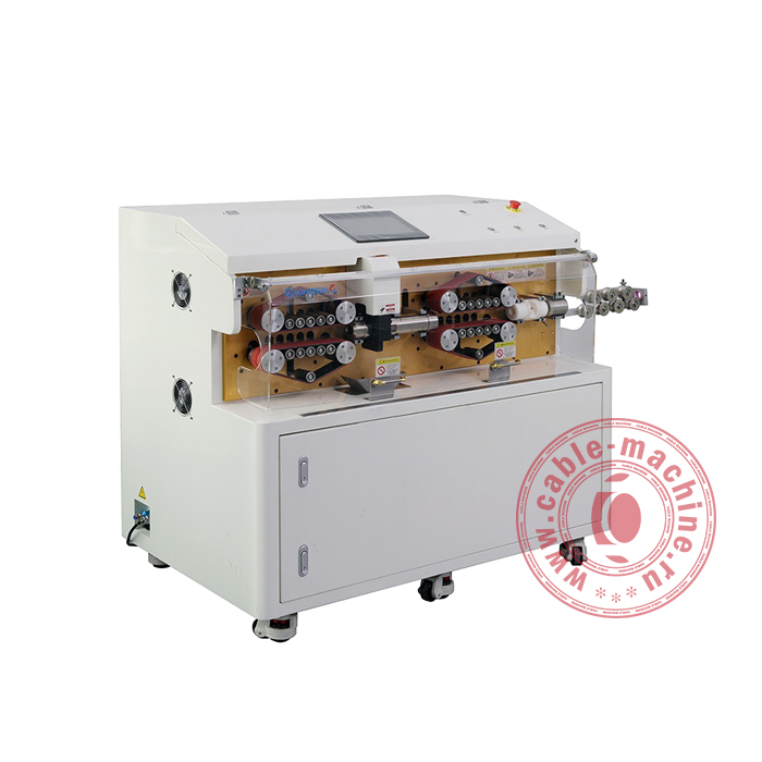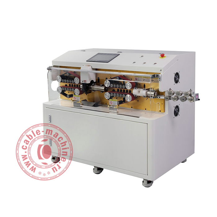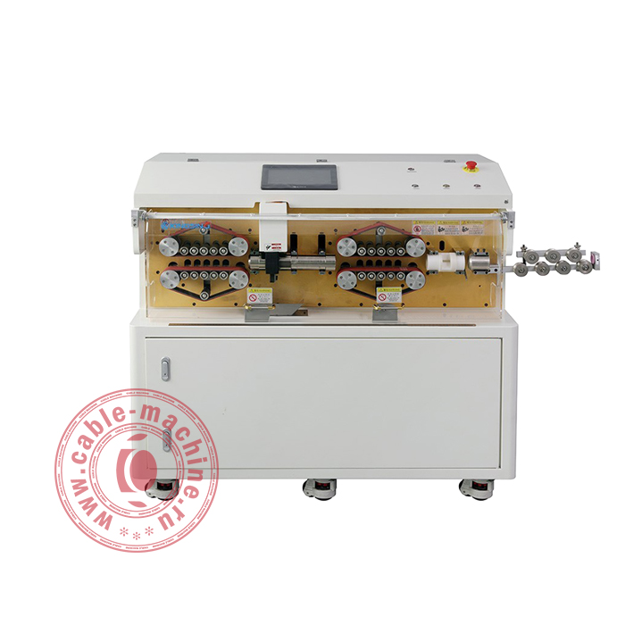 Станок для резки и зачистки проводов KS-W621 – это мощная автоматическая программируемая машина, спроектированная для подготовки к дальнейшим операциям кабелей высокого напряжения, кабелей для зарядки электромобилей и т.п. Все операции инициируются цифровой системой управления и серводвигателями, поэтому выполняются с максимальной точностью. Зачистка внешней изоляции/оболочки выполняется не на обрезанном конце провода, а на промежуточных участках, при этом с одной стороны длина зачистки может не соответствовать длине зачистки с другой стороны (по вводным данным программы). Изделие легко интегрируется в небольшую автоматическую промышленную линию с иным оборудованием.