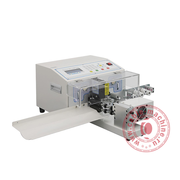 Станок для скручивания провода KS-W605 – программируемая настольная машина, которая в автоматическом режиме может отрезать очень короткие фрагменты одножильного кабеля, зачищать их от изоляционного слоя, после чего скручивать оголенные жилки для подготовки к последующим процессам (пайка и т.п.). При этом обрабатываться могут одновременно две линии провода, что существенно повышает производительность. Все подвижные элементы оснащаются собственными сервоприводами. Чтобы держать ножи в постоянной чистоте/готовности, установлен механизм продувки от очистков изоляции.